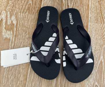 Продам новые оригинальные шлепки Armani, размер 33 (~22 см). Стильный синий цвет и фирменный логотип на верхней части.