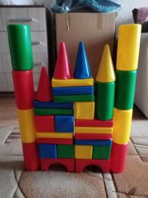 Кубики для малышей пластмассовые (конусы,цилиндры,кубики,прямоугольники,площадки),всего-33 детали,строительный набор,б/у,в...