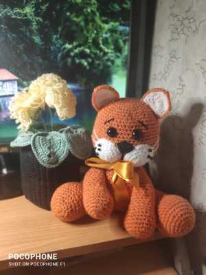 Лисенок Гилберт связан из мягкой плюшевой пряжи. Голова и лапки подвижные. Рост 18 см.