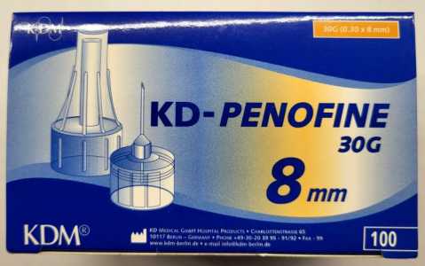 Иглы для шприц-ручки KD-Penofine 30G предназначенные для использования вместе с инсулиновыми шприц-ручками.