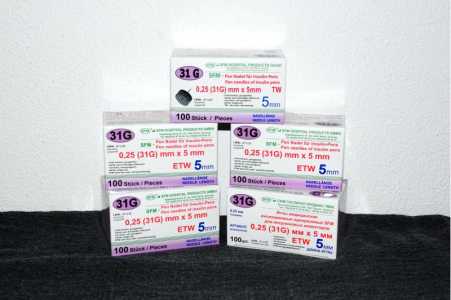 Иглы SFM Hospital Products для инсулиновых шприц-ручек 0,25*5mm (31 G) индивидуально упакованные. Пр-во Германия.