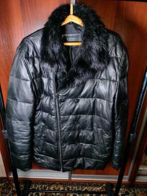 Пуховик Мужской All Franco Натуральная Кожа Воротник Натуральный Мех Сезон Зима Размер 54 XL На Коже Есть Ожог Видно...