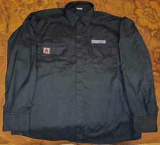 Рубашка термостойкая с длинным рукавом тёмносиняя с логотипом компании ФСК ЕЭС ещё выпуска спецодежды старой добротной...