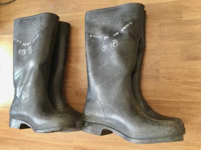 Совершенно новые термостойкие резиновые защитные сапоги. Есть 1 пара размера 40 (255) и 1 пара размера 42 (270).