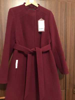 Предлагаю приталенное новое пальто с поясом, цвет винный, воротник стойка, размер 50, длин рукава 64см, длин по спине 98 см.
