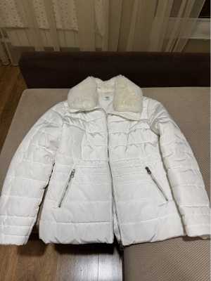 Продам белую демисезонную куртку, приталенная, воротник на пуговицах, можно снять, чтобы постирать куртку.