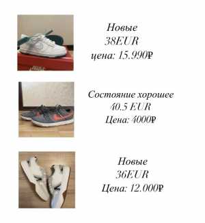 3 пары кроссовок: 1. Nike dunk low GS White Состояние: новое, не ношеное Цена: 15.