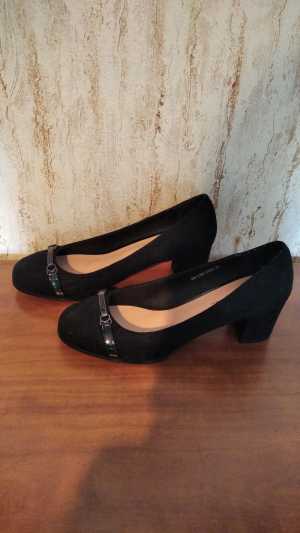 Продаются женские замшевые туфли 38 размера на устойчивом каблуке. Смотрятся эффектно и солидно.