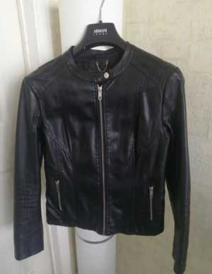 Куртка кожаная из экокожы, Colin's, р. S, в нормальном состоянии, сзади под шеей чуть-чуть протерто (см. на фото), 1500 ₽