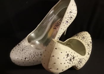 Белые туфли со стразами, размер 35, высота каблука 12см, стелька кожа, верх текстиль. Торг
