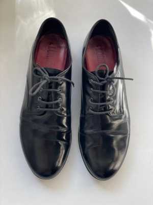 Черные,лакированная кожа,высота танкетки 8,5см. Размер 38. В очень хорошем состоянии,в коробке.