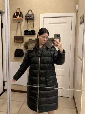 Размер48-50 Шикарный пуховик, отличное качество. Ткань матовая, плотная.