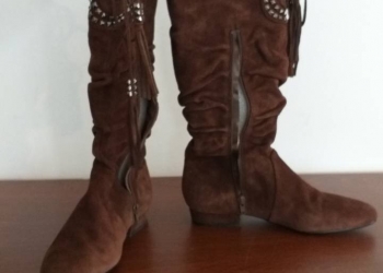 Сапоги б/у. Испания Daniele Ancarani.Размер производителя 40. Каблук 8 см. Замшевый велюр. Темно-коричневый цвет. Цена 2000.