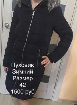 Продаётся б/у пуховик темно синего цвета. 42 размера. Наличный расчёт.