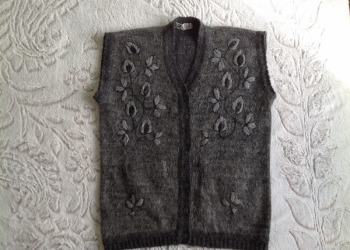 Вязаная теплая жилетка, спереди два накладных кармана, в отличном состоянии.