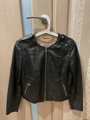 Куртка,кожаная,на кноках,хорошо сидит на фигуре.