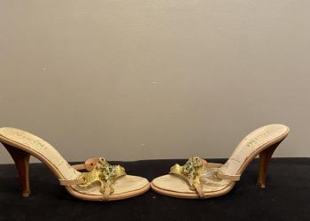 Босоножки б.у. кожаные 39 размер, слегка потерты внутри, изящные, прослужат долго.каблук 4.5 см, устойчивы. 600 руб.