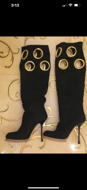 Шикарные высокие сапоги известного итальянского дизайнера Gianmarco Lorenzi. Натуральная замша. Новые. Производство ИТАЛИЯ.