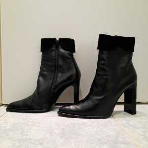 Почти новые кожаные ботильоны. Внутри на тонкой замшевой подкладке. Стелька вытаскивается. Каблук 10 см.