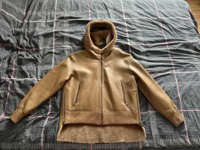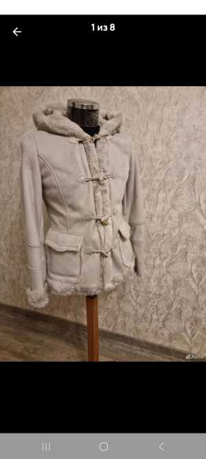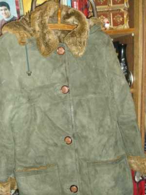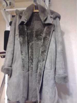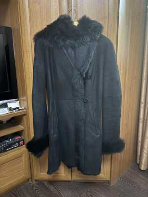 Дубленка 44 размера. По длине прикрывает попу, очень теплая. Капюшон на молнии. Состояние хорошее.