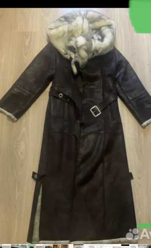 Дубленка натуральная. Воротник и манжеты отделаны мехом норки. Длина 120 см. Дубленку можно купить с доставкой.