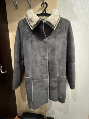 Дублёнка женская темно серая.внутри черный цегейк.в хорошем состоянии длина чуть ниже годен.р.48.