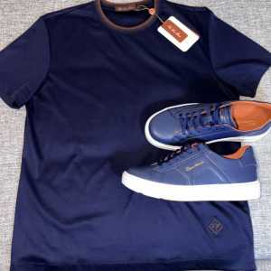 Футболка Loro Piana Это классическая темно-синяя футболка с коротким рукавом.