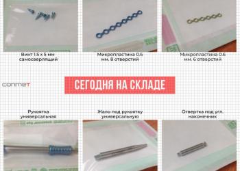 Сегодня на складе: - Винты самосверлящие 1.5 х 5 мм - Микро-пластины 0.6 мм на 6 отверстий - Микро-пластины 0.