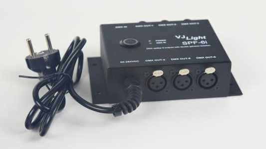 DMX сплиттер VJLight SPF-6i с двойной гальванической развязкой, одним входом и 6 выходами в металлическом корпусе с фланцами...