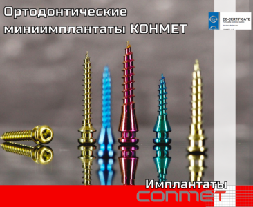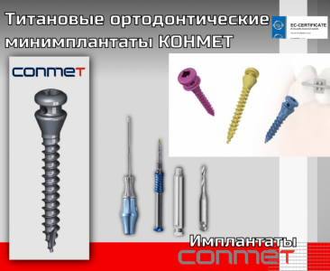 Ортодонтические миниимплантаты КОНМЕТ - титановый сплав Ti6Al7Nb ISO 5832-11 (ASTM А 1295-05).