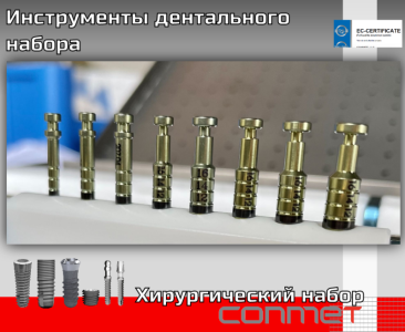 Наборы в наличии, включают в себя инструмент для установки всей линейки имплантатов КОНМЕТ.