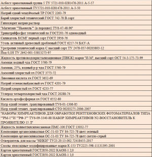 Асбест хризотиловый группа 5 ТУ 5721-010-0281476-2011 А-5-57 Асбест хризотиловый ТУ5721-010-0281476-2011 А-3-50 Натрий...