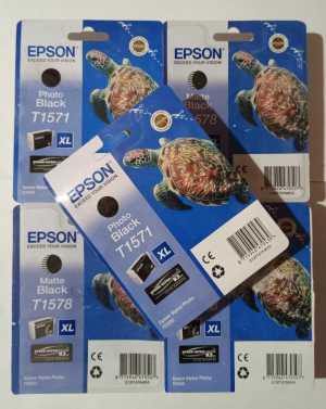 Картриджи для принтера Epson 100% новые, пригодны для печати, вставляете и пользуйтесь!!! T1571 Black - чёрный XL - 5шт...
