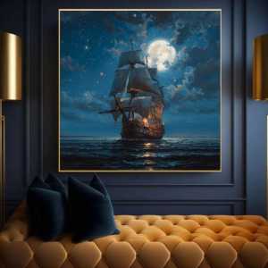 Картина маслом ручной работы Пиратский корабль Картина наполнена магией ночного моря и величием пиратской эпохи.