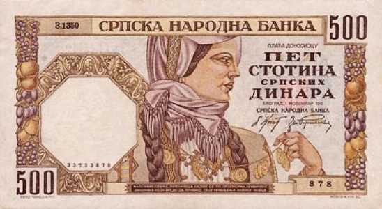 Югославия. 500 сербских динар 1941 года. Оккупация. Состояние - прессовое.