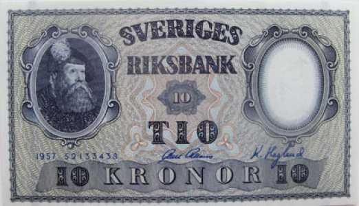 Швеция. 10 крон 1957 год. Цена 950 руб. 10 крон 1951 год. Цена 1200 руб. Обе банкноты в прессе.