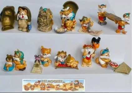 Полная серия игрушек из киндер сюрпризов, состояние отличное, но на подставке у кота есть царапина. Практически не видно.