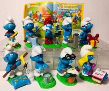 Полная серия со всеми вкладышами. Смурфов можно переставлять на любую подставку