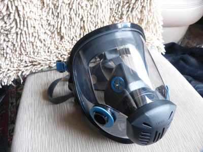 Панорамная маска одного универсального размера с двумя байонетными узлами для присоединения фильтров.