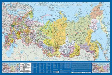 Большая красивая настенная карта Российской Федерации. Кр412п Федеративное устройство. Крым в составе РФ.