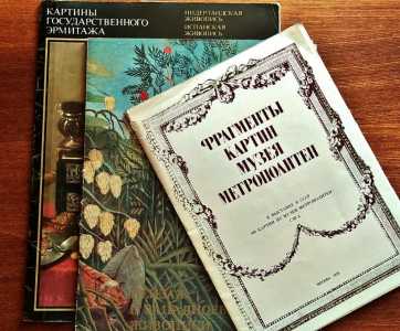 Альбомы с цветными репродукциями на отдельных листах, вложенных в бумажные папки с сопроводительными текстами: 1.