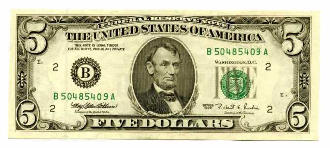 Банкнота 5 долларов США 1995г в прекрасном состояние, в коллекцию.
