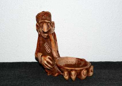 Пепельница сувенирная глиняная. В виде Чабана в папахе, держащем в руке непосредственно пепельницу с надписью Пятигорск.