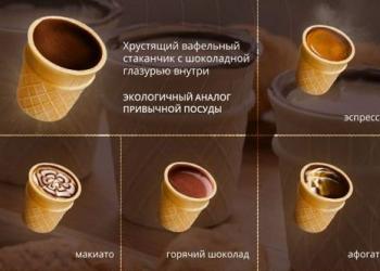 Шоколадно-вафельный стаканчик для кофе, позволяющий налить горячий эспрессо и спокойно выпить его.