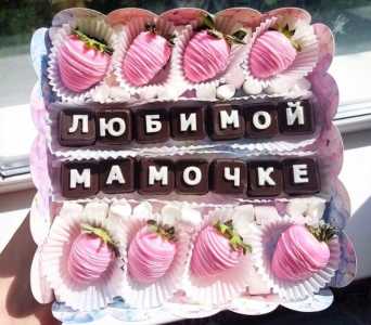 Cостав: Шоколадные буквы - 14 шт Клубника в шоколаде - 8 шт Маршмеллоу- 25 гр Коробка - 1 шт Мы находимся в 8 городах...