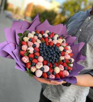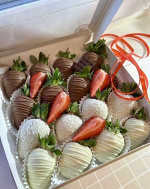Состав: Клубника-37 шт Клубника в шоколаде- 42 шт Мята-1 шт Голубика-250 гр Мы находимся в 8 городах: Москва...