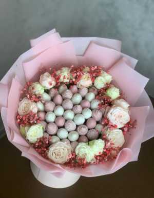 Состав: Клубника в шоколаде-45 шт Розы кустовые-9 шт Гипсофила-5 шт Мы находимся в 8 городах: Москва, Воронеж, Санкт...