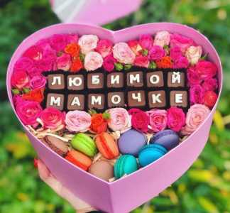 Cостав: Макарун - 9 шт Шоколадные буквы - 14 шт Розы кустовые - 9 шт Коробка - 1 шт Мы находимся в 8 городах: Москва...