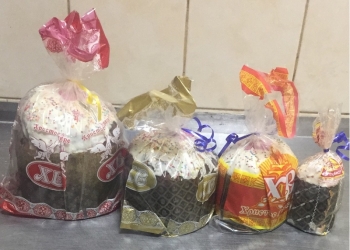 Выпекаем куличи с изюмом . Сверху покрыта белой глазурью с цветной кондитерской посыпкой и буквы ХВ. Есть доставка.