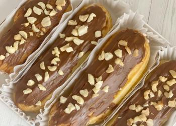 Вкусные эклеры в подарочной упаковке. В коробке набор из 5 шт. Цена в объявлении за 1 шт + упаковка 100 рублей.